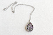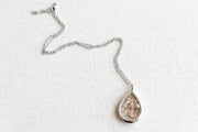 Silver Teardrop (crystals): 1.5" x 1.25", 24 inch chain